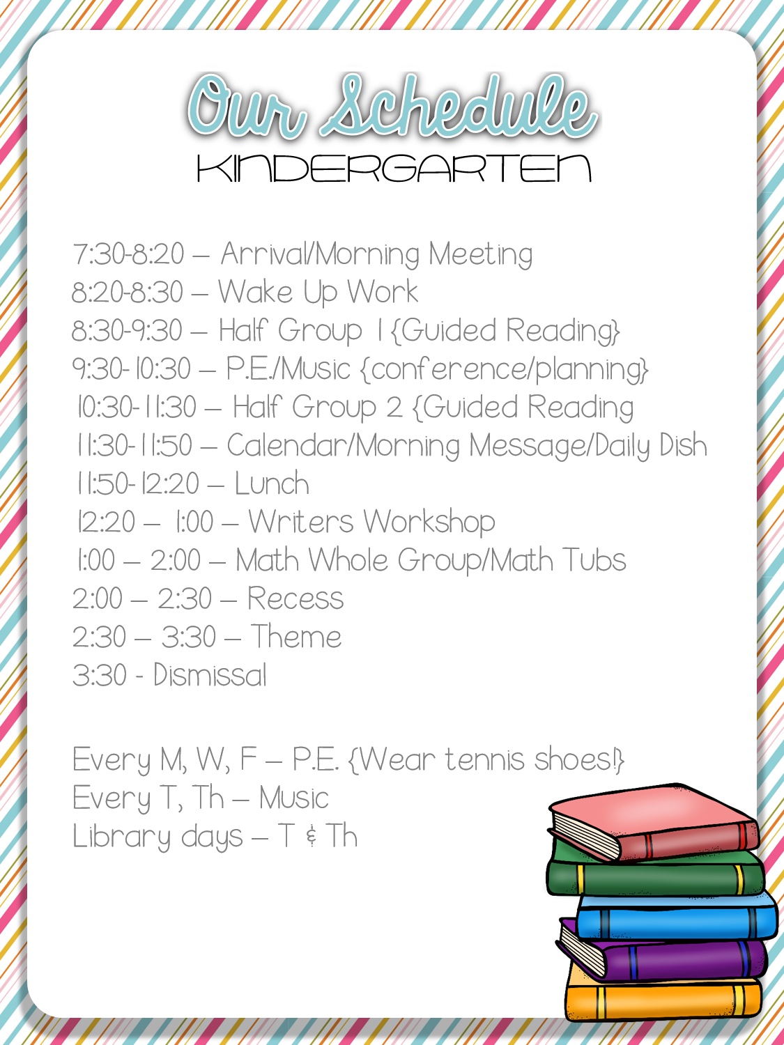I’ve taught for 13 years. In those 13 years, I’ve taught at 4 different schools and in 3 different grades {K-3}. Each year I feel like I have the “best schedule ever“. Really. But I have to say, the schedule I’ve had the past two years just might take the cake. Let’s take a peek, shall we?!
