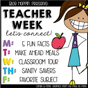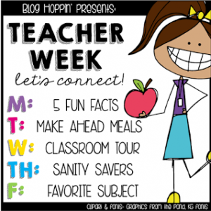 Hey y'all! Happy Monday! Have you heard?! It's Teacher Week!!! We're celebrating on Blog Hoppin' and would love for you to link up with us!! Here's what we have planned this week... So let's get started with today's topic... 1. I have taught for 13 years...10 in Kindergarten, 2 in First Grade, and 1 in 2nd Grade. First is my most favorite :) I mean, I loved Kindergarten, but there's just something about the curriculum in first grade that has my heart. This is my second year out of the classroom and while I really do miss it, I sure do love what I'm doing … [Read more...] about Teacher Week 2015 – 5 Fun Facts About Me (& a Deal of the Day!!!)
