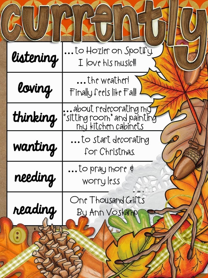 LISTENING: I’m listening to Hozier on Spotify. Over. And over. And over again. I absolutely ADORE this man. And his voice. And ALL of his music. My current favorites are From Eden, Cherry Wine, and of course, Take Me To Church.