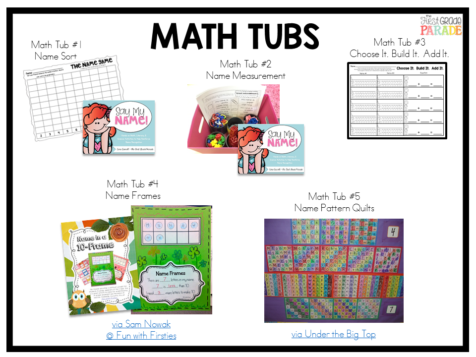 Let’s break down the math tubs. I incorporate name recognition here, too.