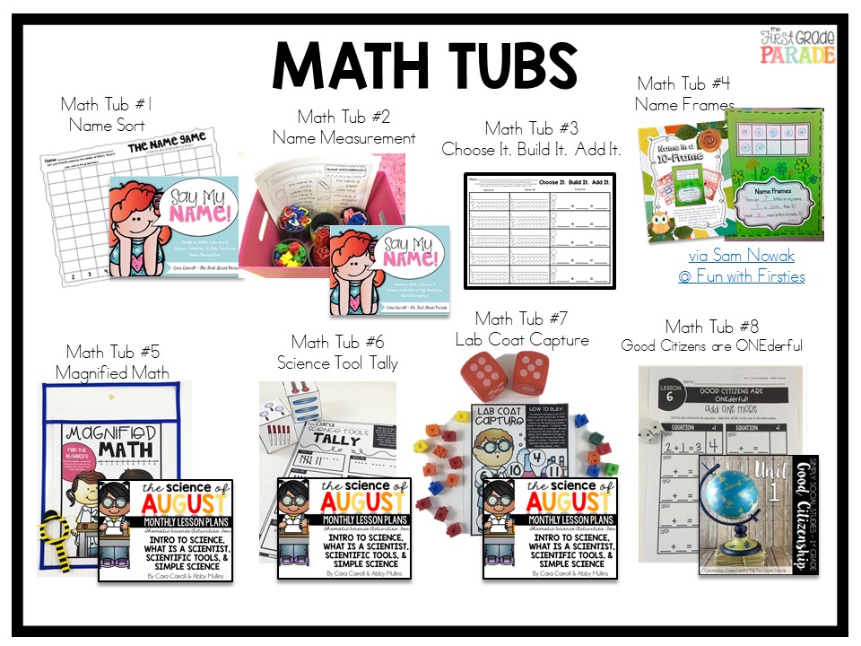 Let’s break down the math tubs. I incorporate name recognition here, too.