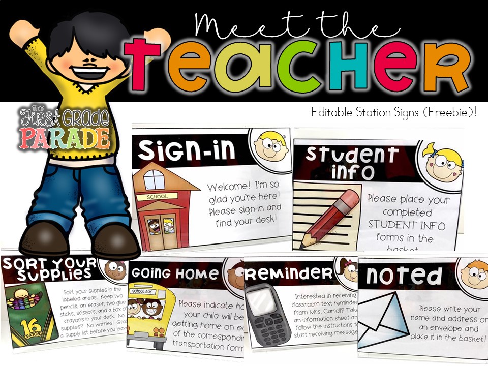 While we’re talking about Meet the Teacher, let’s consider setting up your room in stations!!! I printed out these station signs to make the night easy to manage and free me up to answer any questions my parents might have. They’re editable and you can grab them FREE HERE.