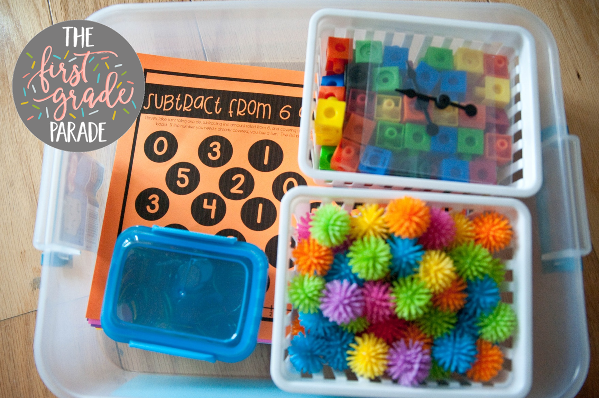 As you can see, they come with two long trays and 2 divided trays of 3. I bought several of these containers and just mixed and matched the compartments to use as needed. I like using the trays of 3 for my counters and using the long trays inside of a different container to house my crayons, colored pencils, and skinny markers. I love the idea of keeping my counters in one space making it easy for kids to access. Actually, I have several of these that hold my counters, but you get the idea! It’s easy for kids too choose from, easy for me to store, and I know I can always find everything in one spot!