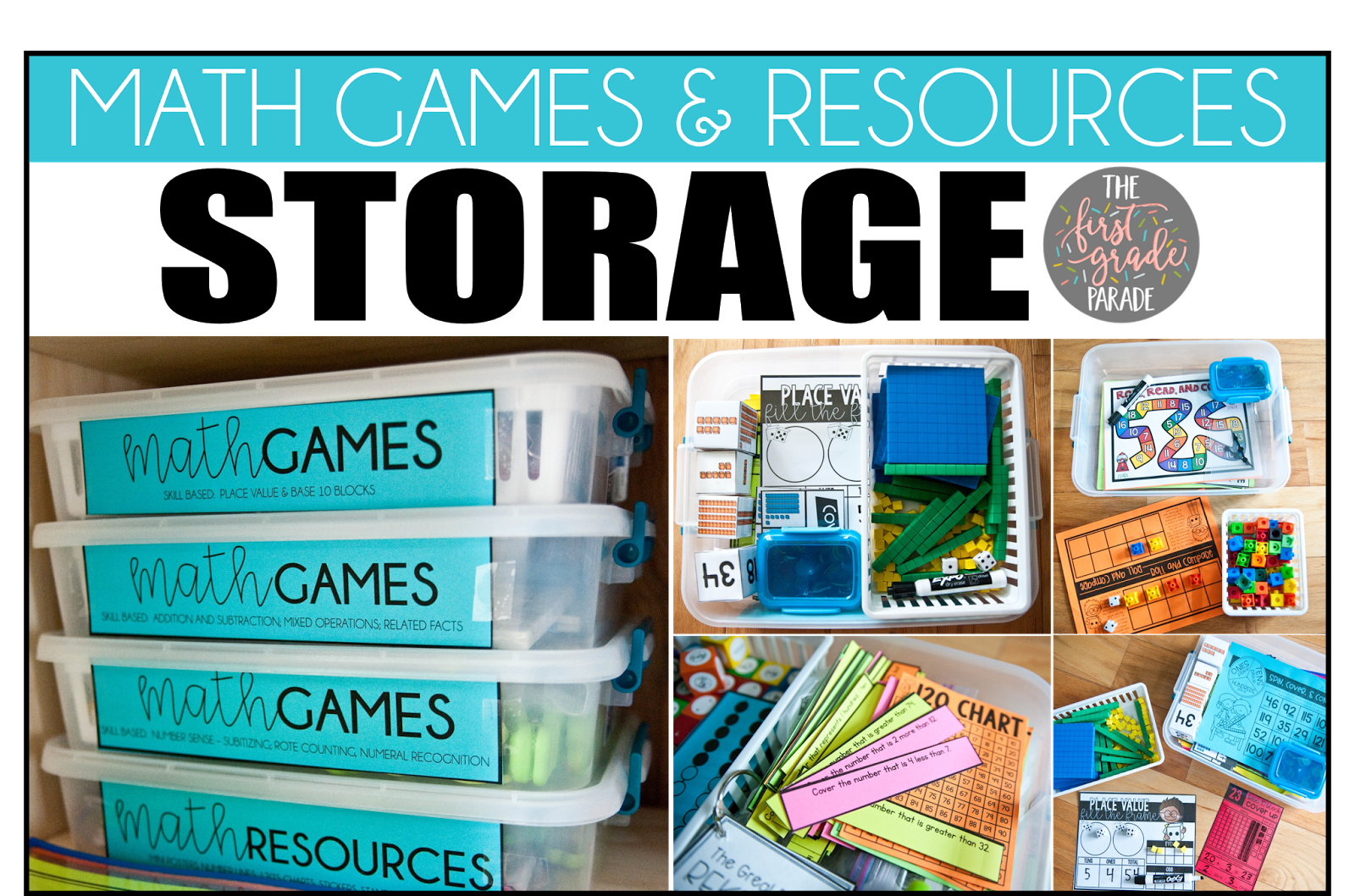 My Making Math Fun games & activites fit perfectly into each container. I like to place each unit into a different bin and store them. Then when I want my kids to play a specific game or complete a specific activity, I’ll remove the remainder of the games/activities, place them in an extra box, and then take the container and fill it with the items necessary to complete the activity and place it on the math shelf. The latch-top lid is perfect for keeping everything contained.