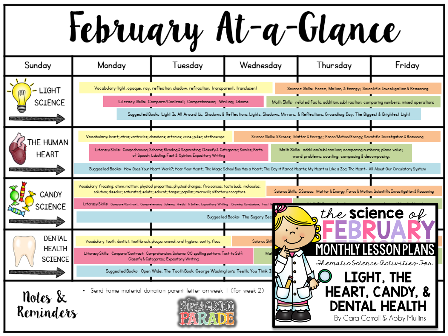 Our science resources include a visual pacing calendar (this one is from February’s unit)…