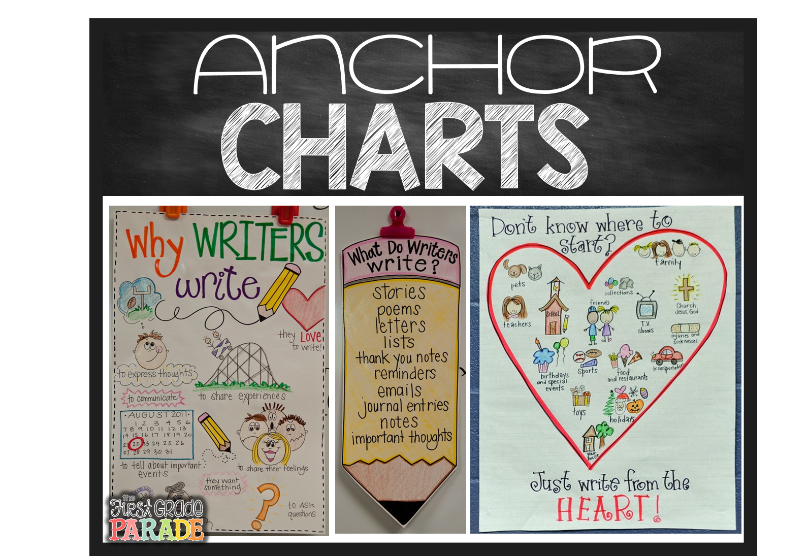 And while we’re talking about resources, I think it’s extremely important we keep resources readily available for our kids to refer to when they’re writing. I keep my anchor charts posted around my writing center and my kids refer to them all the time. We create these together during a whole group writers workshop minilesson and then display for use.